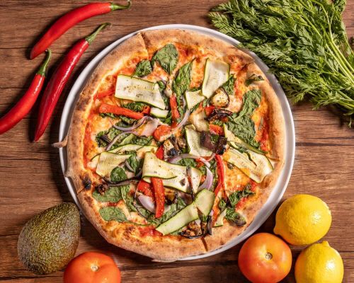 Tomato sauce, fior di latte, spinach, capsicum, onion, eggplant, zucchini & oregano.