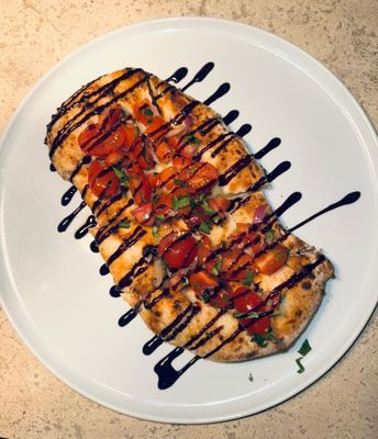 Wood-fired bread topped with fresh tomato, garlic, fresh herbs, EVOO & balsamic glaze