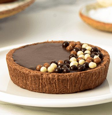 A tangy passionfruit filling in a buttery crust, topped with fresh strawberries