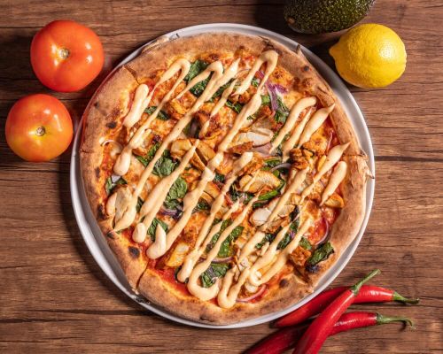 Tomato sauce, fior di latte, capsicum, spinach, grilled chicken marinated in tandoori spices, onion & peri-peri sauce.