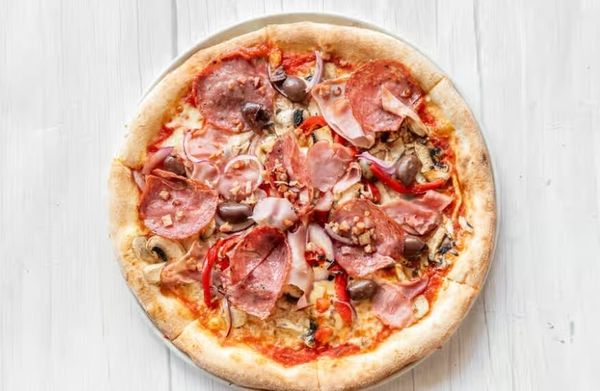 Tomato sauce, fior di latte, mushroom, spanish onion, capsicum, olives, double smoked ham, salami & bacon.