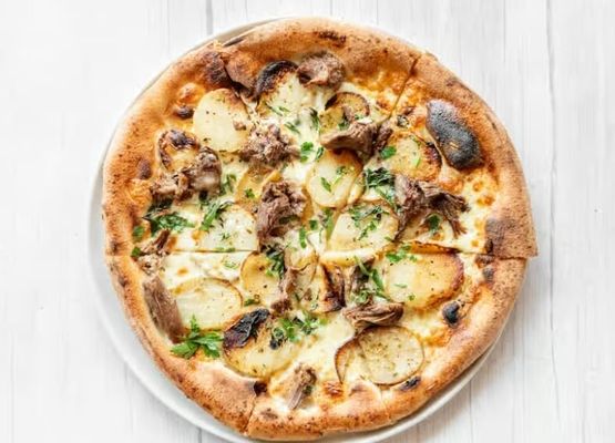 Fior di latte, roasted potato marinated with garlic & rosemary, lamb, parsley & oregano.