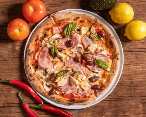 Tomato sauce, fior di latte, mushroom, double smoked ham, artichokes & olives.